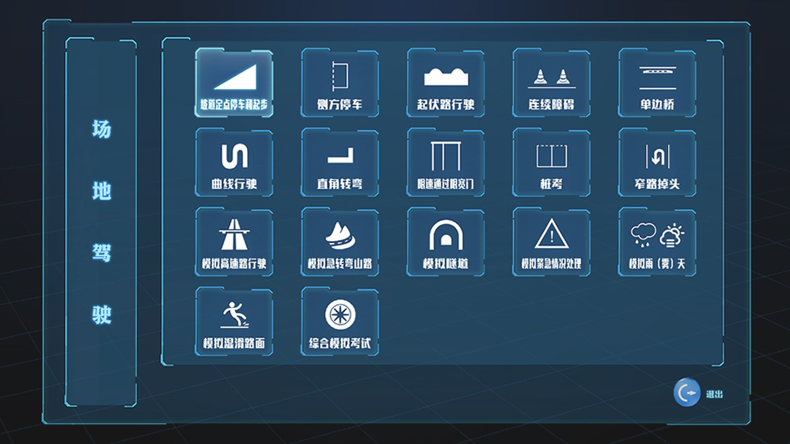 具有多場景、多模式、多科目的訓(xùn)練功能,訓(xùn)練科目參考《某崗前訓(xùn)練大綱》和大車駕駛訓(xùn)練場地建設(shè)標(biāo)準(zhǔn),滿足競技、比武考核的要求。